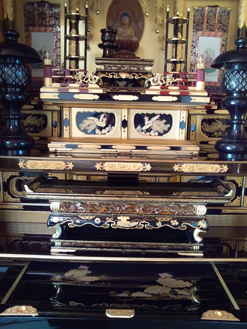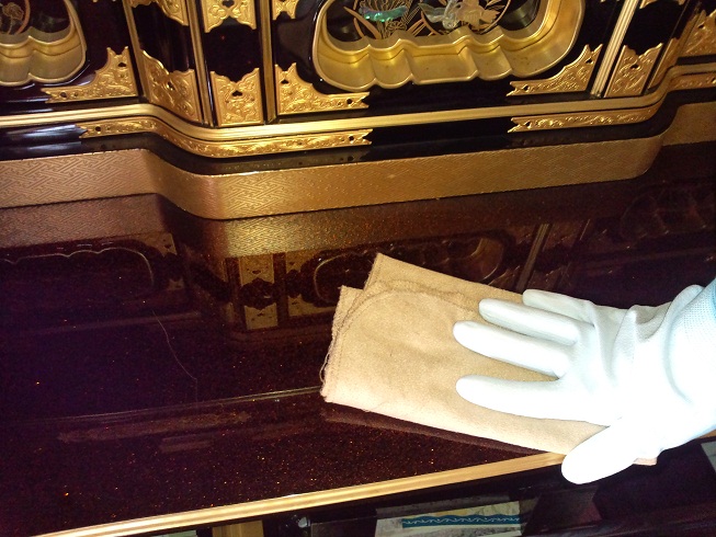 お掃除が終わりましたので、お仏具を飾っていきます。