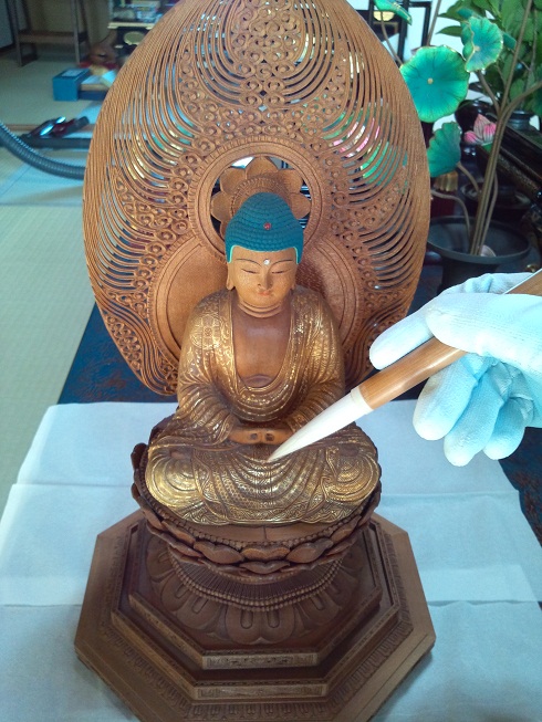 仏像は筆を利用します。 繊細な彫り物には十分注意して優しくお掃除してください。