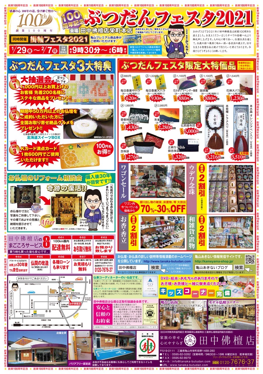 1月29日(金)から2月7日(日)まで、創業100周年記念 ぶつだんフェスタ2021を開催いたします☆