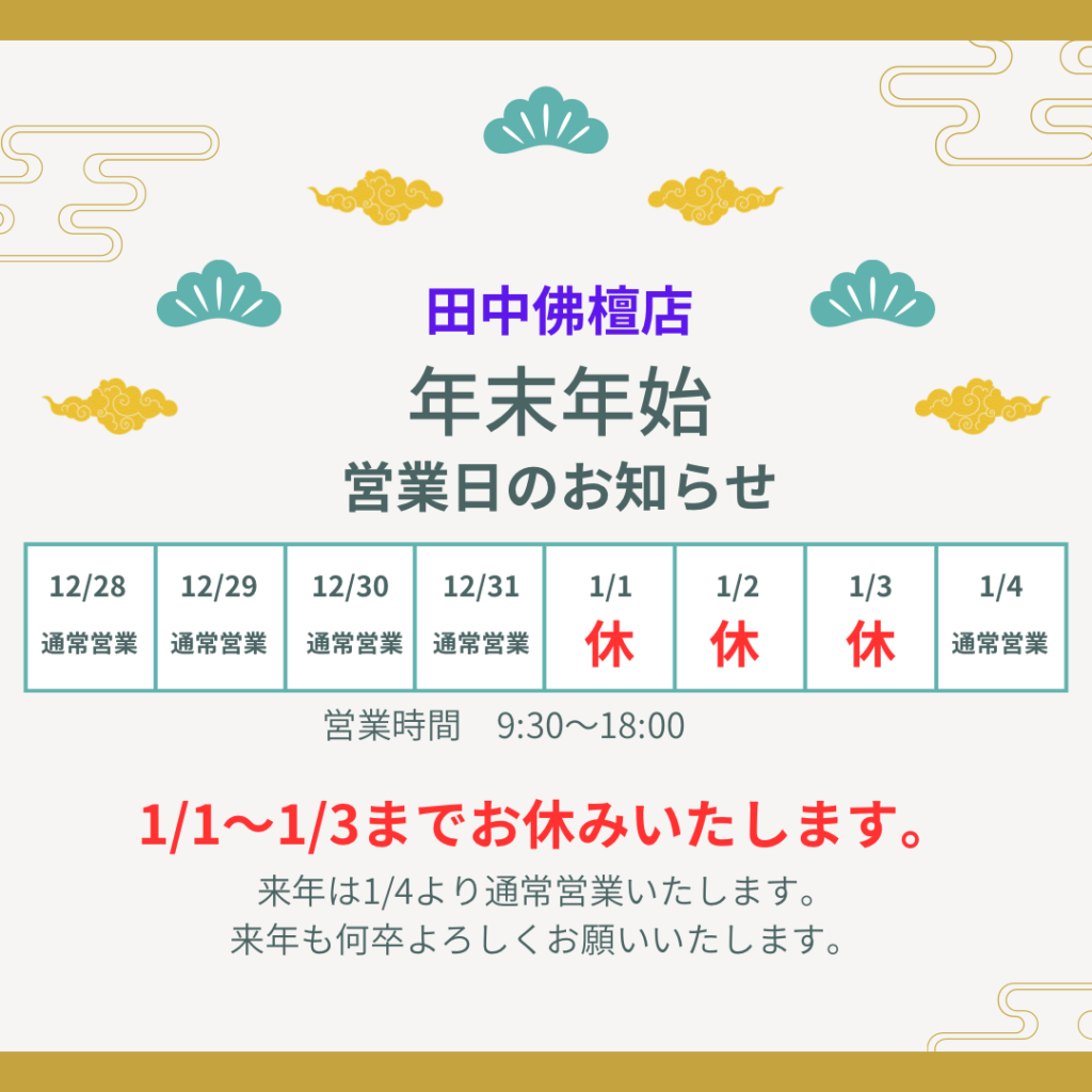 田中佛檀店は、31日(水)大晦日まで休まず営業いたします💪✨