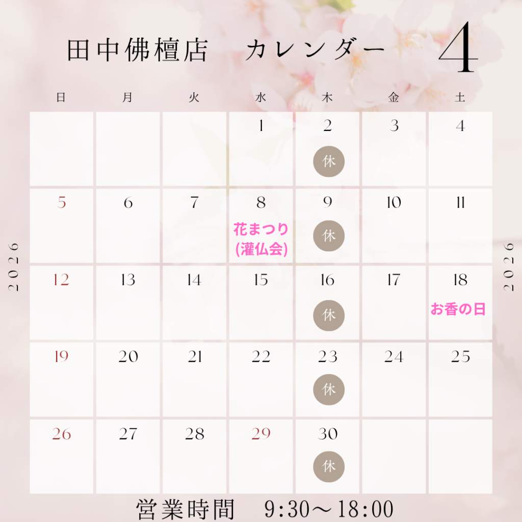 田中佛檀店、4月のお休みカレンダーです🗓️