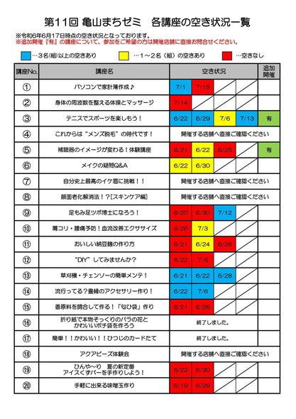 他の講座の空き状況一覧です。
